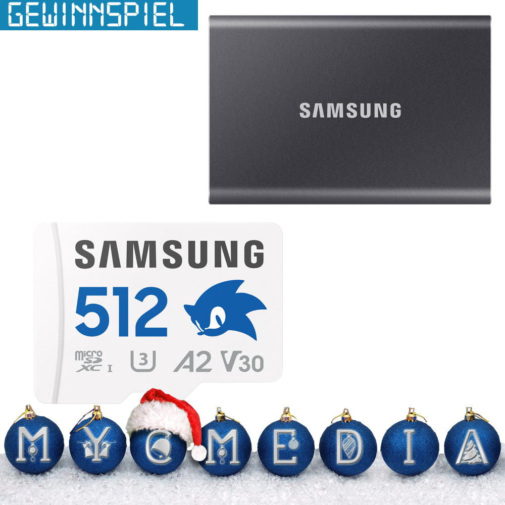 Hinter unserem 32. Türchen verbirgt sich eine PSSD T7 (1 TB) sowie eine Sonic the Hedgehog™-microSD (512 GB) von Samsung.