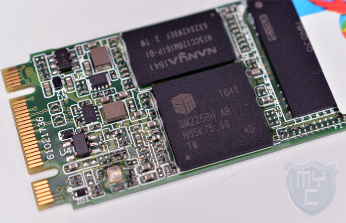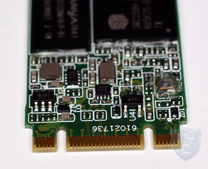 Betrachtet man das PCB einmal etwas genauer, so findet man einen Silicon Motion SM2258 Controller vor, welcher nicht nur auf dem PCB verlötet, sondern zusätzlich auch noch verklebt wurde.