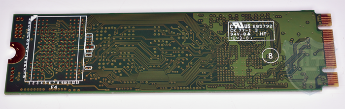 Im Vergleich zu einer normalen SATA-SSDs im 2,5″-Format befindet sich das PCB der SSD nicht in einem schützenden Gehäuse.