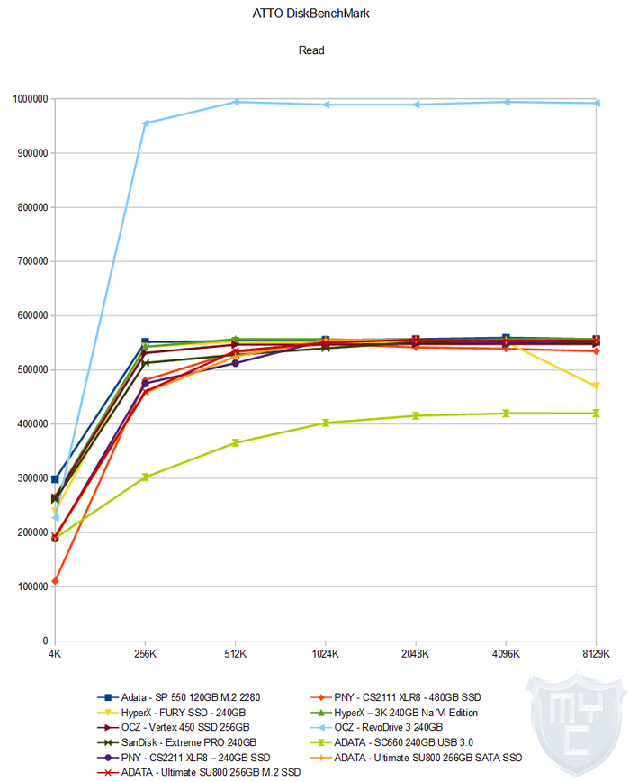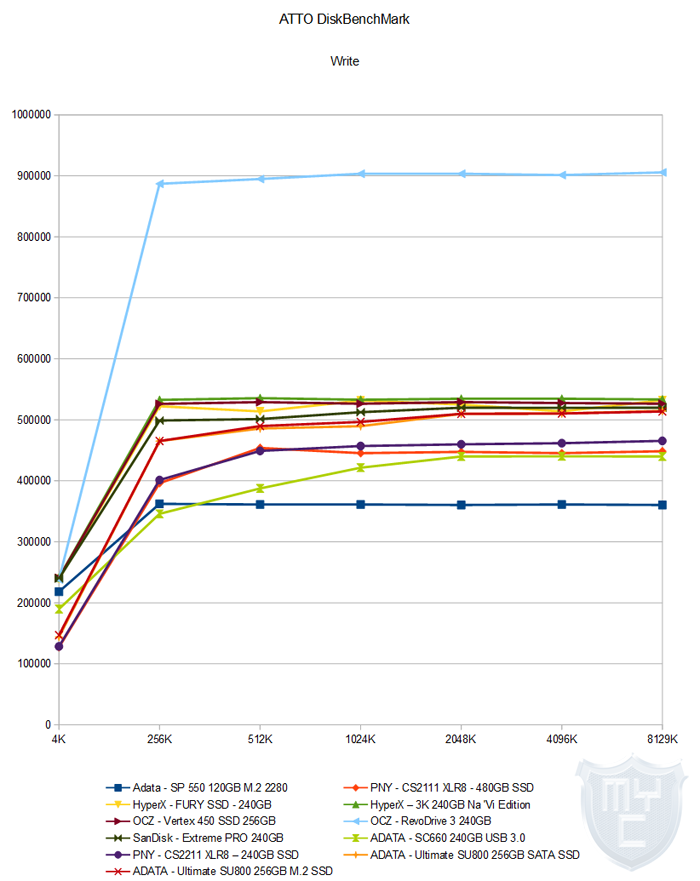 Der ATTO Disk Benchmark ermöglicht es einem die SSDs mit einer höheren Abfragetiefe zu beanspruchen. Wir haben die SSD somit mit einer Queue Depth von 10 getestet.