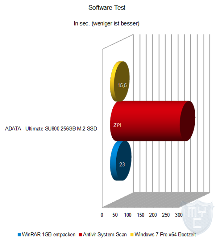 In diesem Test werden wir die Geschwindigkeit messen, in welcher die SSD es schafft eine WinRAR Datei von einem GB zu entpacken, einen vollständigen Systemscann mit AntiVir absolviert und wie lange ein auf der SSD installiertes Windows 7 benötigt, um zu booten.