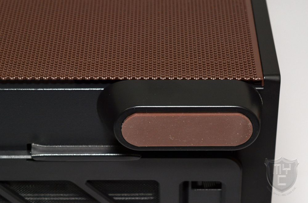 Das Antec und Noctua das Design des Flux Pro Noctua Edition bis zum kleinsten Detail hin zu Ende gedacht und auch entsprechend ausgeführt haben, erkennt man spätesten mit einem Blick auf die Farbgebung der auf den Standfüßen angebrachten Gummielementen. Diese sind wie der Gehäusedeckel in dem von Noctua bekannten Braunton gehalten.