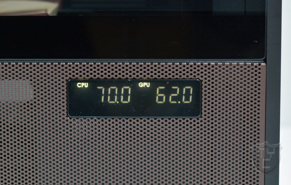 Auf diesem Display kann man sich nach der Installation der iUnity Software von Antec die ausgelesene CPU- und GPU-Temperatur anzeigen lassen. Ob nur eine der beiden Temperaturen, oder beide Temperaturen angezeigt werden, lässt sich über den Temperaturtaster auf der Gehäuseoberseite auswählen.