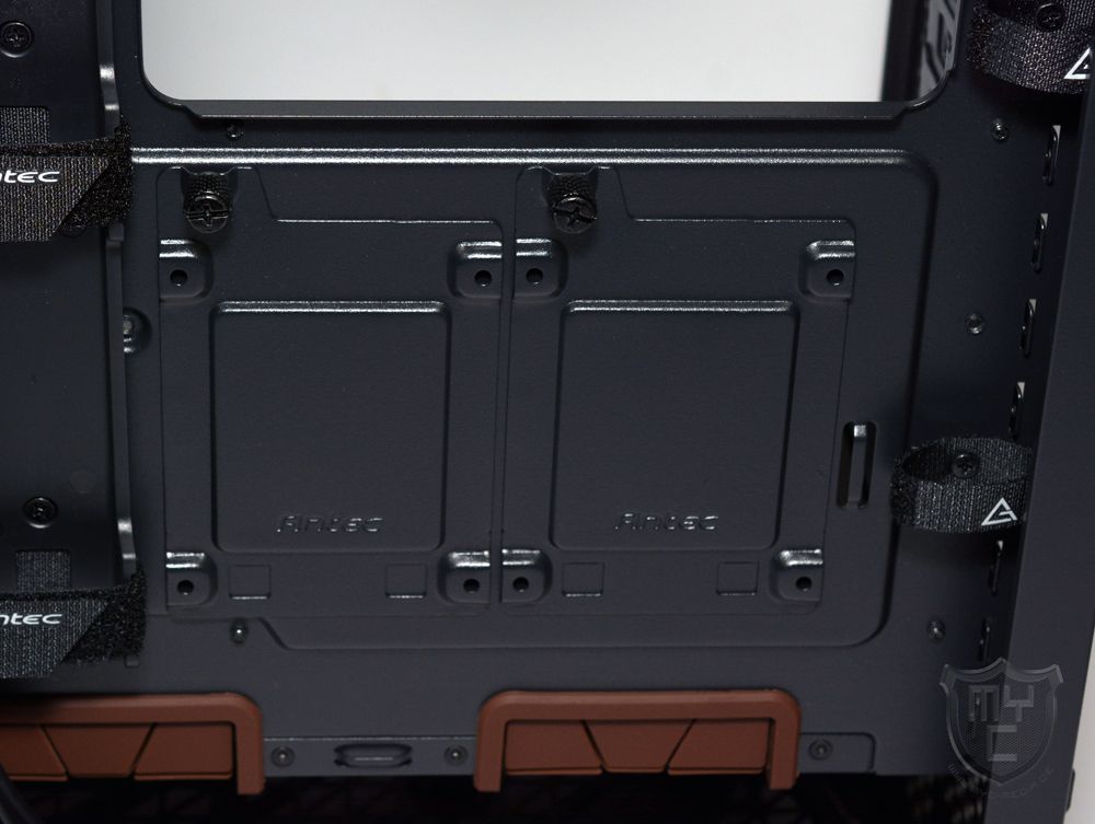 Passend zum aufgeräumten Innenraum hat Antec auch die Rückseite des Mainboardschlittens klar strukturiert und mit einer Möglichkeit zur sauberen Kabelführung ausgestattet hat.
