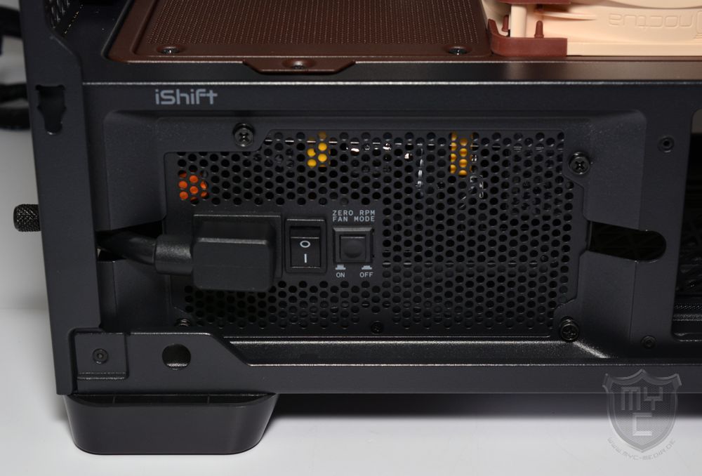 Möchte man das Netzteil nicht verdeckt im Gehäuseinneren verbauen, so lässt sich die vorinstallierte Blende durch eine im Lieferumfang befindliche Blende austauschen, wodurch man auch längere Netzteile problemlos in dem Flux Pro Noctua Edition verbauen kann.