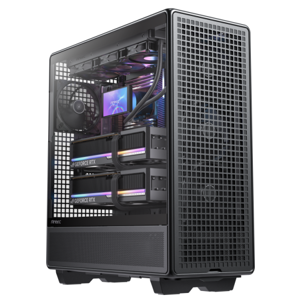 Inspiriert vom Erbe des ursprünglichen Nine Hundred-Gehäuses setzt das Antec 900 die Philosophie des hohen Luftstroms und der Erweiterbarkeit fort und entwickelt sich gleichzeitig für moderne Computeranwendungen weiter. Das offene interne Layout fördert einen effizienten Luftstrom für stabile Leistung bei längeren Arbeitslasten wie KI-Verarbeitung, Rendering und Simulation.
