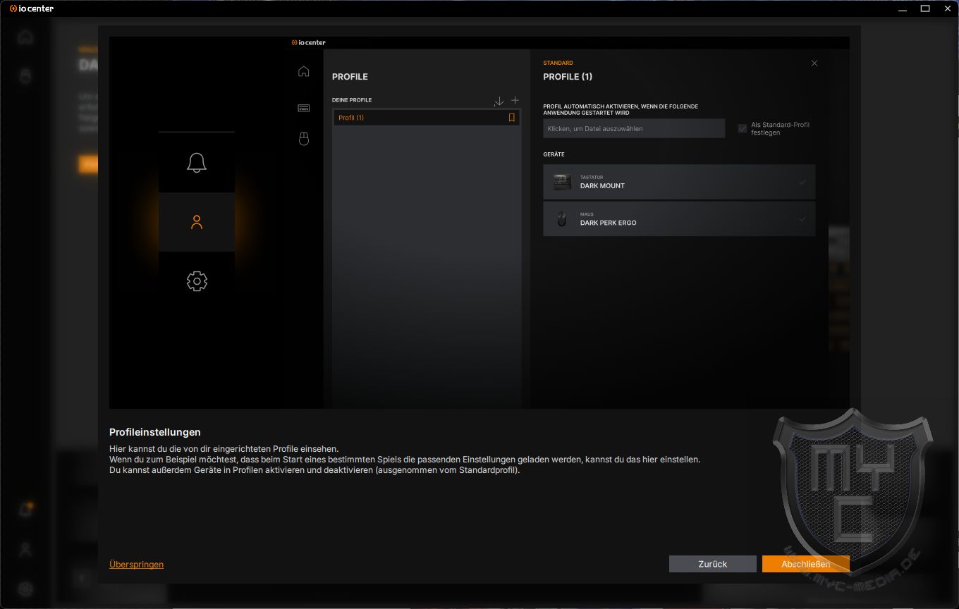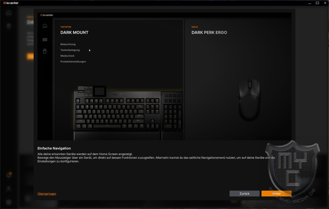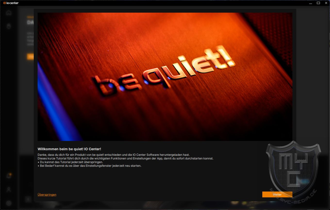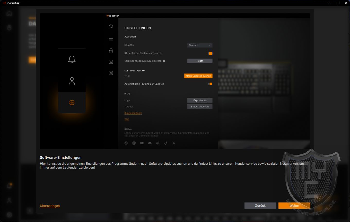 Startet man das IO Center erstmalig wird man mittels eines kurzen Intros in die grundlegenden Funktionen der Software eingeführt.