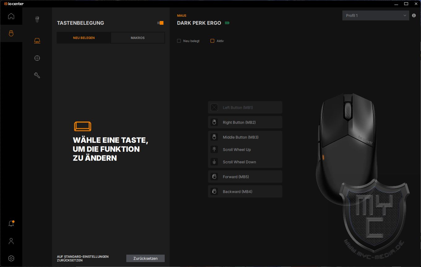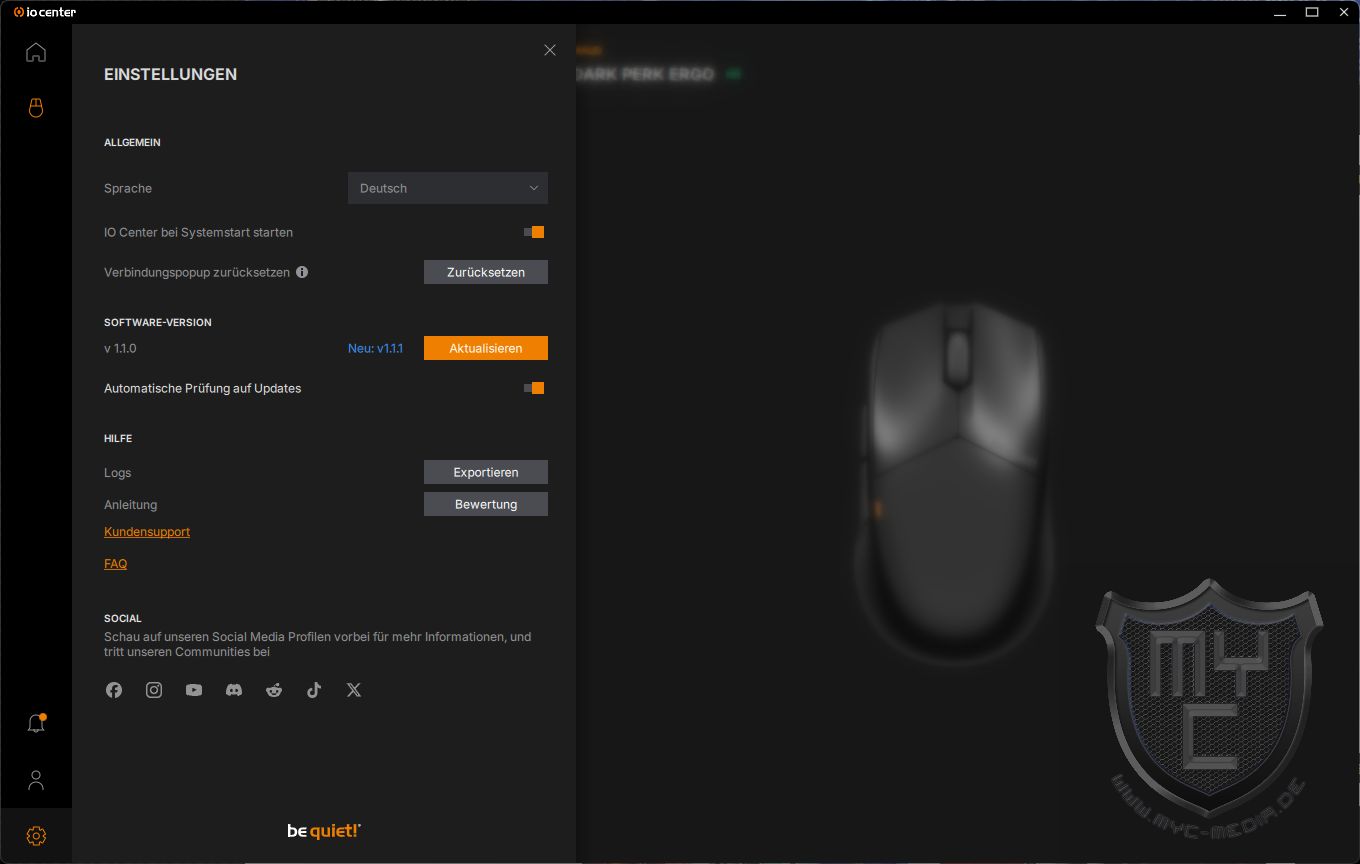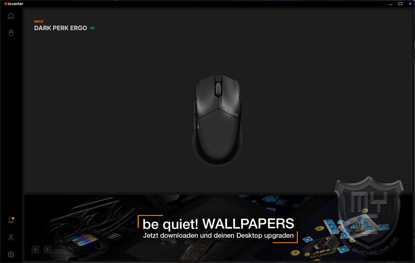 Die be quiet! – Dark Perk Ergo wireless Gaming-Maus wurde von unserem Windows 11 Testsystem problemlos per Plug-and-play erkannt und alle Grundfunktionen können ohne die Installation eines zusätzlichen Treibers oder einer speziellen Software genutzt werden. Für den vollen Funktionsumfang muss man allerdings das be quiet! IO Center installieren.