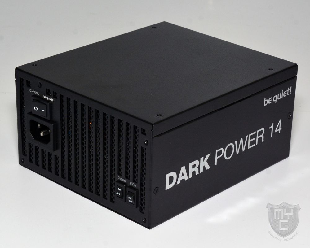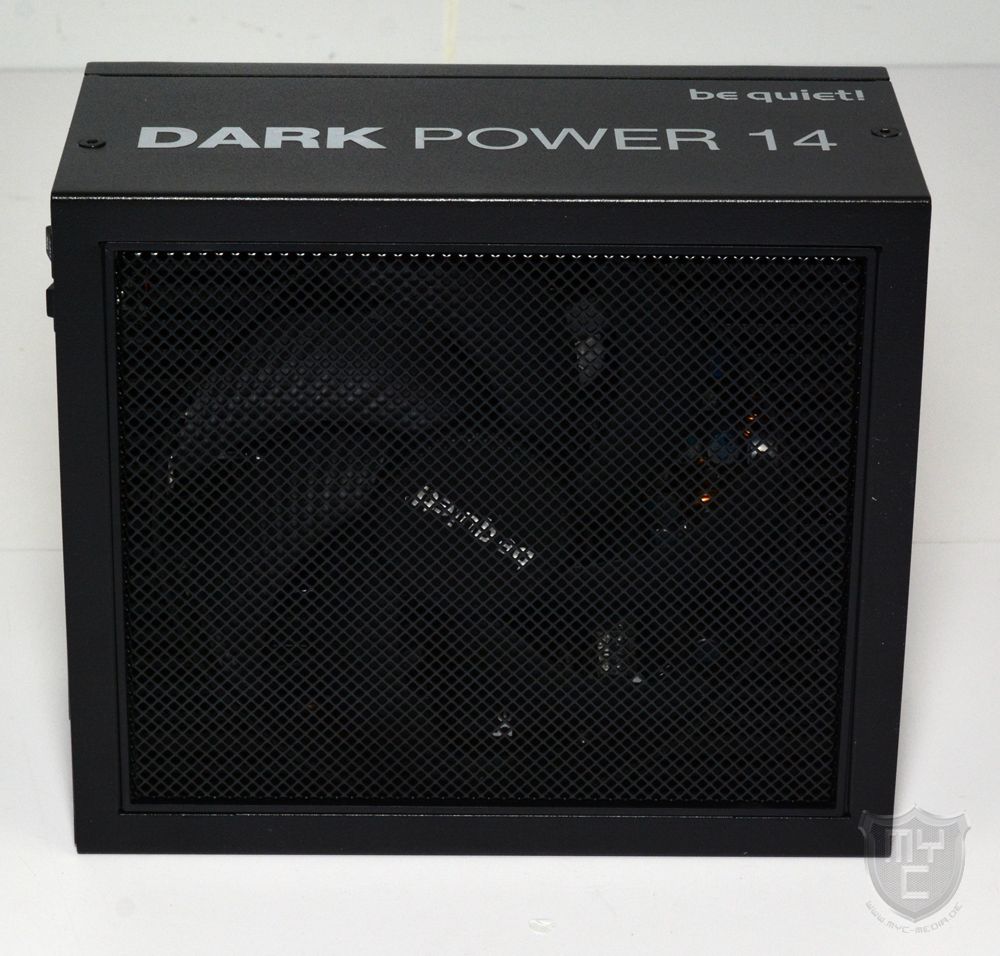 Auf der gegenüberliegenden Seite wurde neben einem weiteren glänzenden be quiet! Schriftzug auch noch ein großen und zur gebotenen Effizienz silber glänzender Dark Power 14 Schriftzug angebracht.