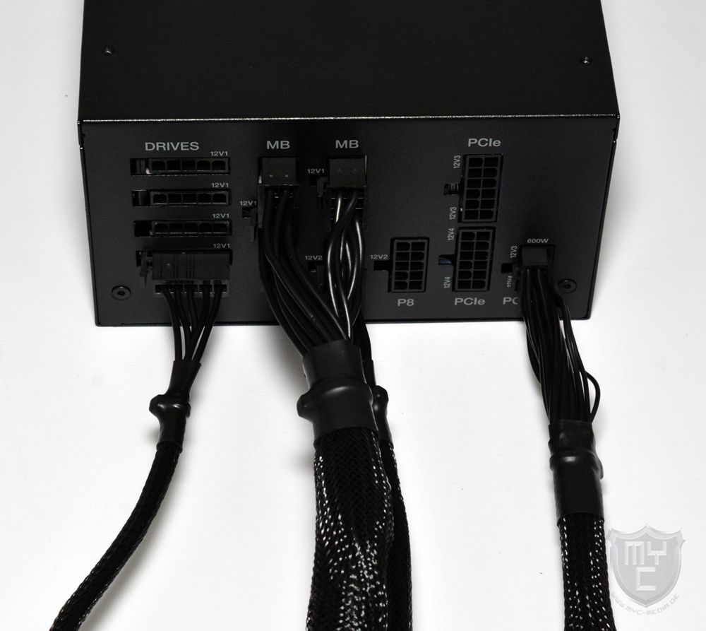 Die 12V Spannung wird im Auslieferungszustand über vier 12V-Schienen zur Verfügung gestellt. Dank der guten Beschriftung der modularen Anschlüsse lässt sich die Last hierbei gut auf die vier getrennten 12V-Schienen verteilen.