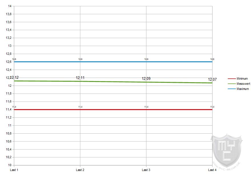 | +12 V | +5,00 bis -8,00 % | 11,04 V | 12,6 V |
