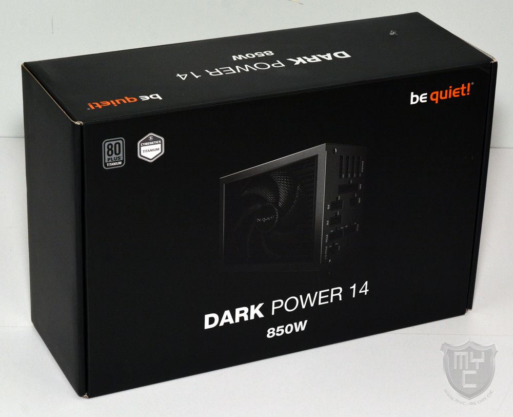 Das Dark Power 14 850W wird von be quiet! in einer schwarzen Verpackung geliefert, welche auf der Vorderseite neben einem Produktbild auch mit der Modellbezeichnung sowie einem Hinweis auf die gebotene Ausgangsleistung und Effizienz bedruckt wurde.