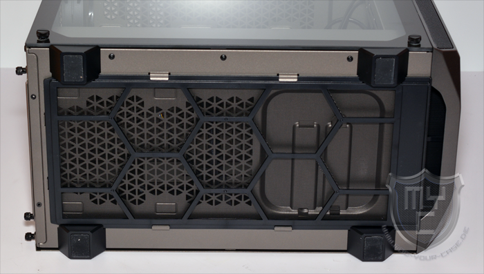 Betrachtet man das Gehäuse einmal von seiner Unterseite aus, so findet hier man einen mächtigen Staubfilter vor, welcher sich fast über die gesamte Unterseite erstreckt.
