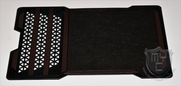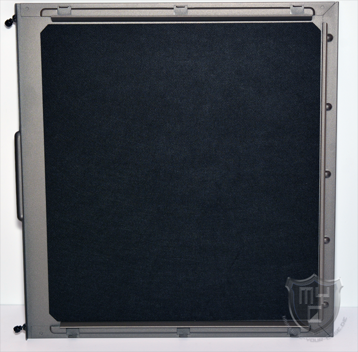 Die hier verbaute Abdeckung verfügt im hinteren Bereich über dreieckig designte Luftauslässe und kann auf Wunsch ganz einfach vom Gehäusedeckel abgenommen werden. Um dies zu bewerkstelligen, wurde die Abdeckung mittels mehrerer Magnetbänder ausgestattet. Zudem wurde die Abdeckung im geschlossenen Bereich noch mit einer Dämmmatte ausgestattet, wodurch sogar dieses kleine Detail zu einer bestmöglichen Reduzierung der Geräuschkulisse beiträgt.