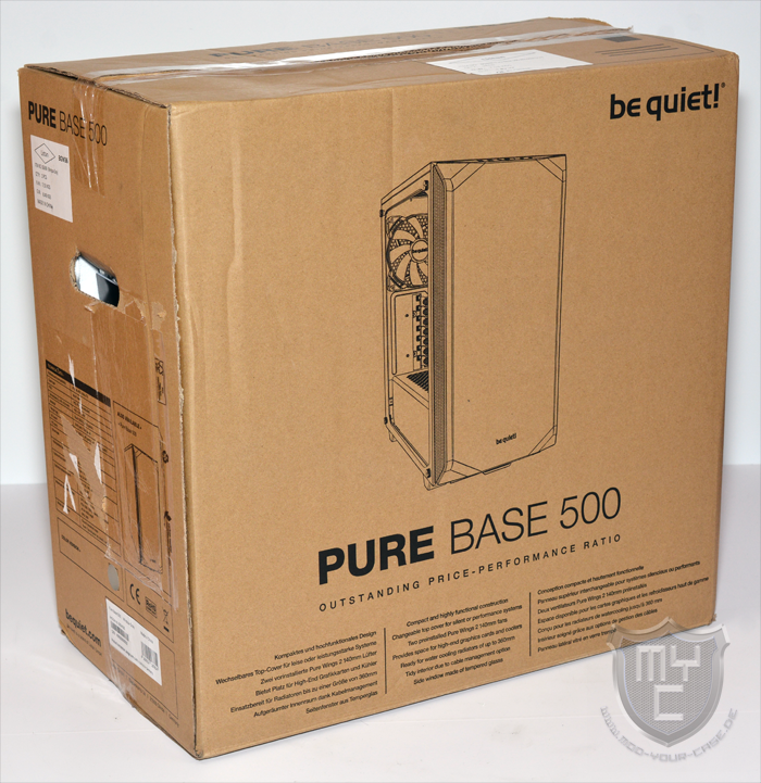 Innerhalb seiner OVP ist das Pure Base 500 Window durch Styroporpolster geschützt, durch welche es den Transport zum Käufer ohne eine weitere Umverpackung unbeschadet übersteht.