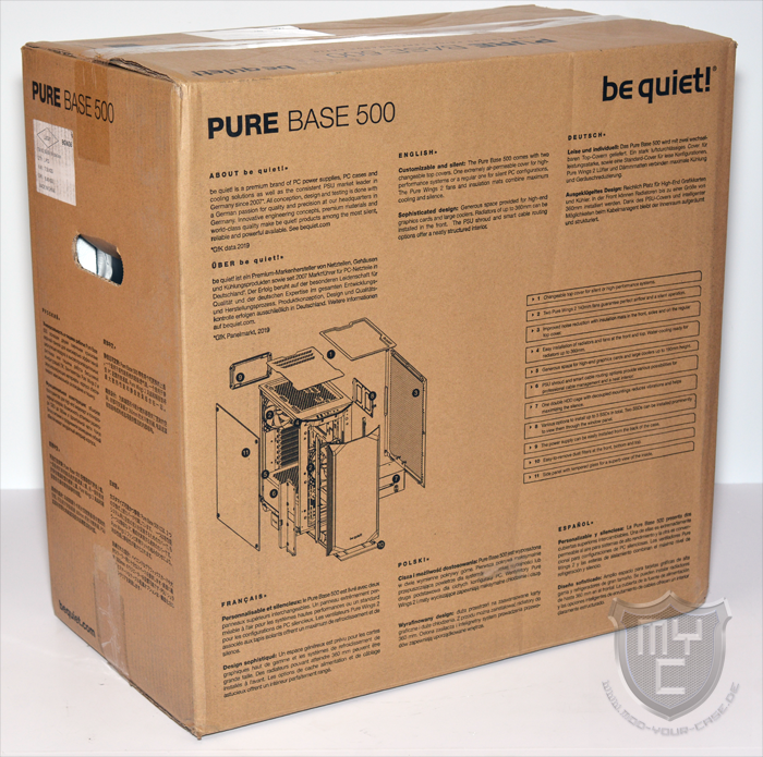 Auf der Verpackungsrückseite befindet sich eine Explosionszeichnung, anhand welcher einem die einzelnen Komponenten des Gehäuses erläutert werden.