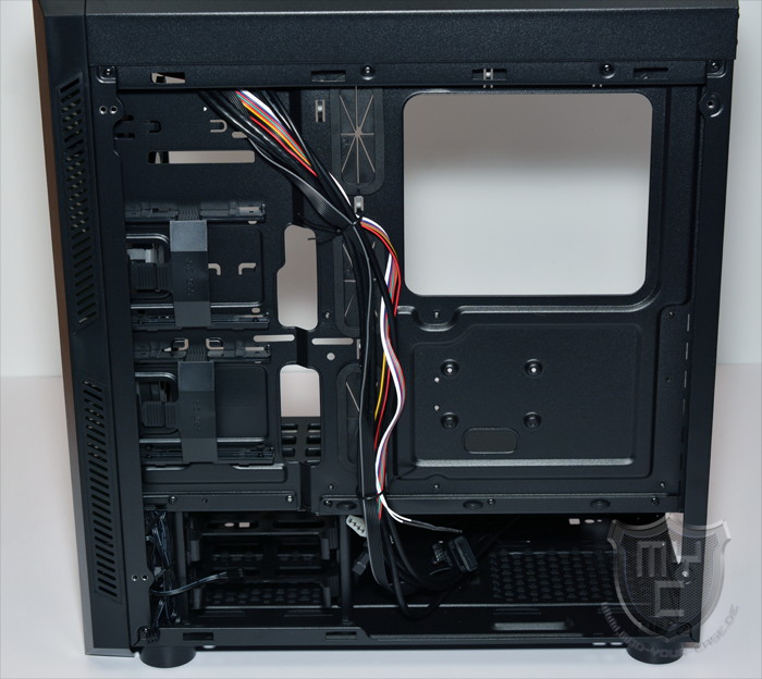 Wirft man einmal einen Blick in das Gehäuseinnere, so findet man einen sehr aufgeräumten Innenraum vor, welcher im unteren Bereich mit einem Netzteiltunnel ausgestattet wurde.