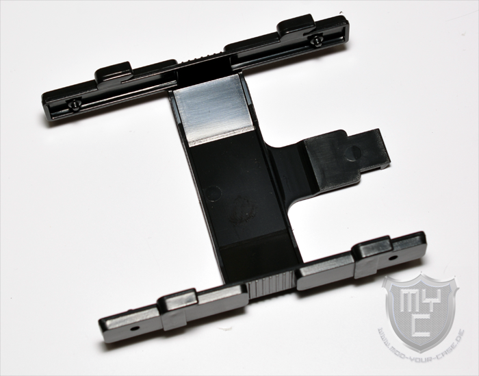 Diese Kunststoffrahmen können hierzu ganz einfach aus ihrer Verankerung gelöst und vom Mainboardschlitten abgenommen werden.