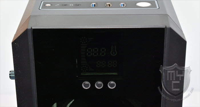 Bei dem hier verbauten Display handelt es sich um die Anzeige der integrierten Lüftersteuerung, welche über die drei darunterliegenden Tasten gesteuert wird.
