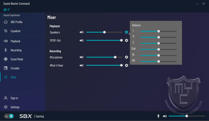 Die seitens Creative bereitgestellte Sound Blaster Command Software wurde mit der Einführung der AE-5 überarbeitet und zeigt sich seitdem schon recht klar strukturiert. Mit der AE-7 hat man die Software nochmals überarbeitet und lässt nun zu jedem Zeitpunkt einen direkten Zugriff auf das Menü zu.