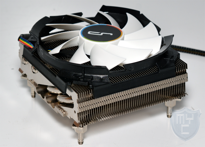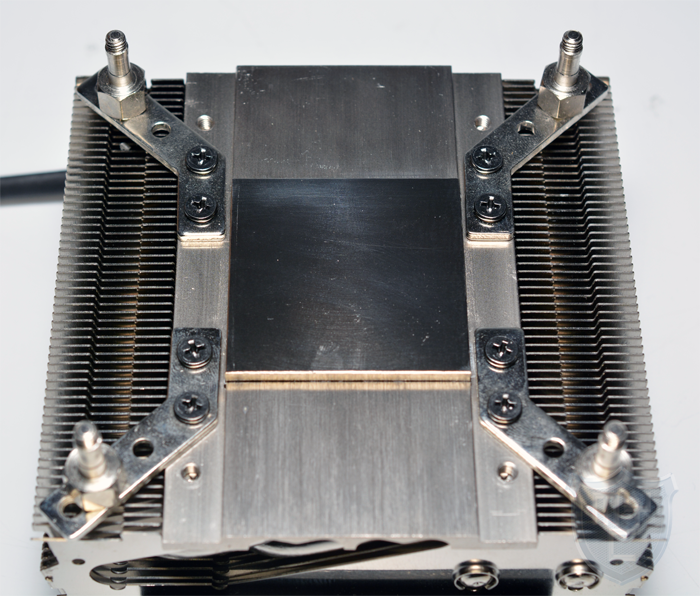 Die Heatpipes wurden so angeordnet, dass zwei der vier Heatpipes zur linken Seite und die anderen beiden zur rechten Seite hin gerichtet sind. Die Heatpipes sind so eng gebogen, dass sie vollständig im Inneren des Kühlers verlaufen. Somit wird die Hitze von einer langen Seite der u-förmig gebogenen Heatpipes an der sehr breiten Bodenplatte aufgenommen und auf der anderen Seite an die Kühlfinnen weitergegeben.
