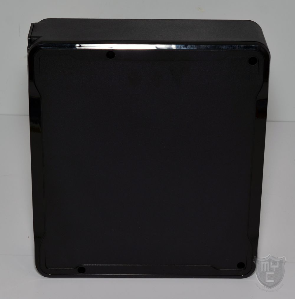 Die linke und rechte Außenseite wurden passend zur Gehäusefront mit mattschwarzen Kunststoffelementen verkleidet. Wo die rechte Außenseite fest mit dem Gehäuse verbunden ist,
