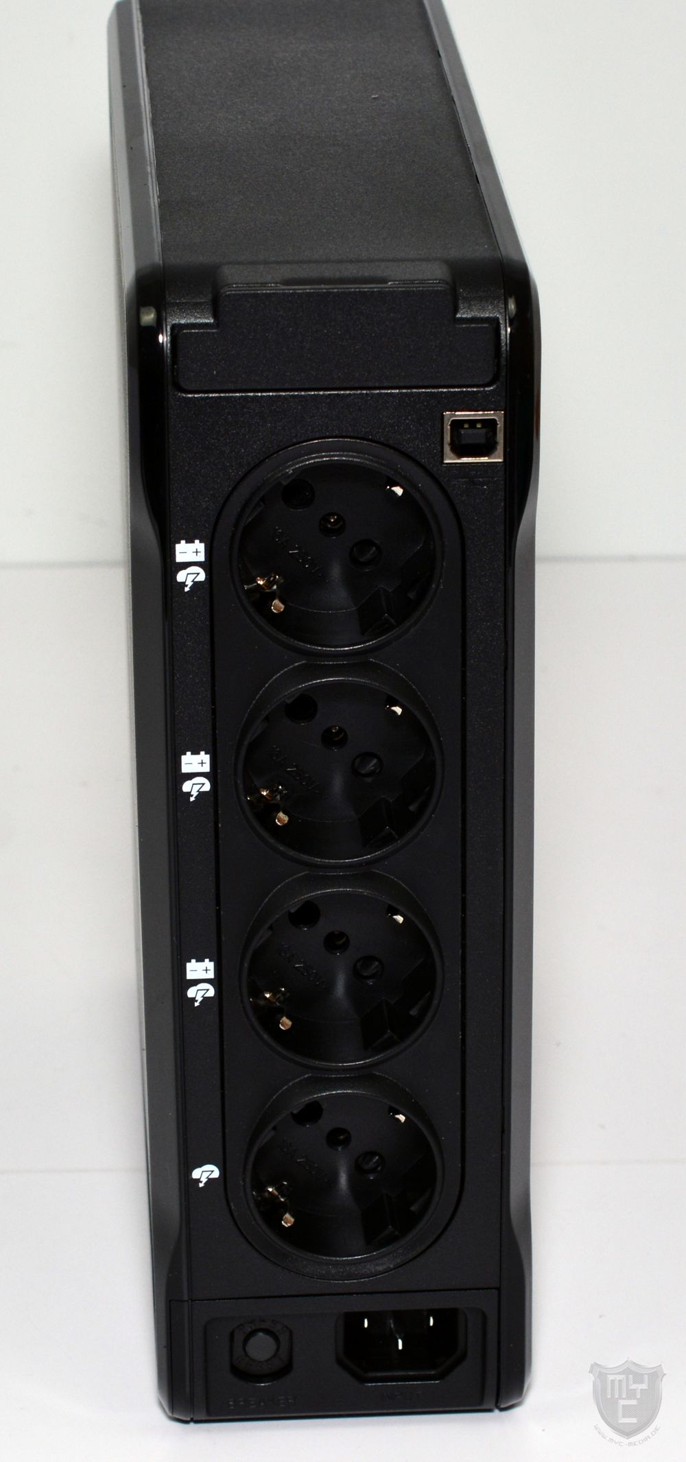 Da die von uns in diesem Test herangezogene Version der USV nicht mit C13-Anschlüssen, sondern mit Schuko-Anschlüssen ausgestattet ist, kann man alle Geräte, welche sich rund um den Schreibtisch befinden, direkt und ohne Umwege mit der USV verbinden.