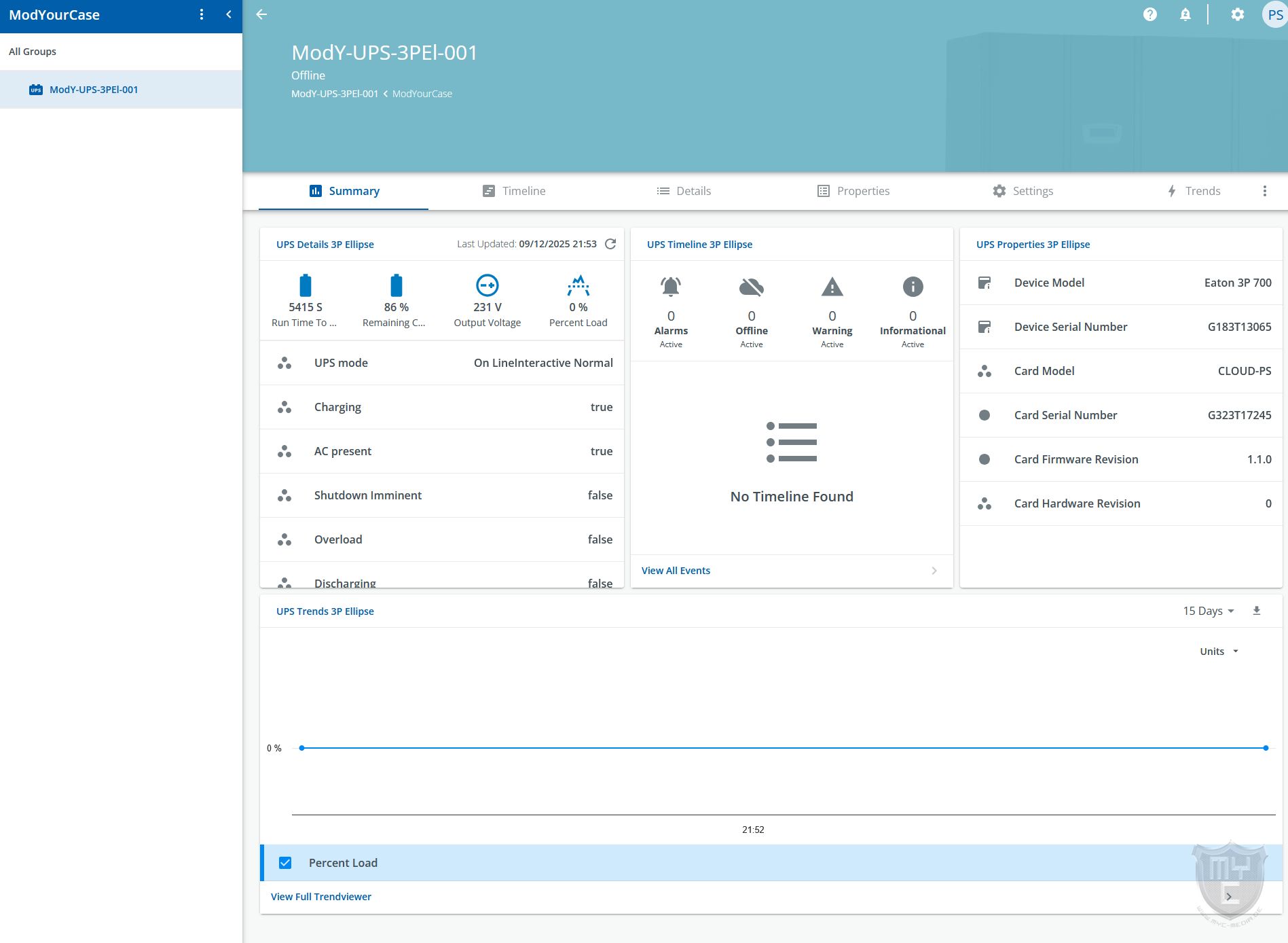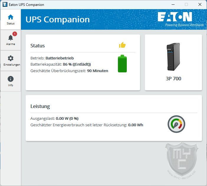 Auch wenn es sich bei der 3P Ellipse 700 USB DIN um eine Offline-USV (Standby-USV) handelt, bei welcher angeschlossene Geräte im Normalzustand direkt über das normale Stromnetz versorgt werden, bietet einem Eaton über die zum Download bereitgestellte UPS Companion Software die Möglichkeit sich den aktuellen Status anzeigen zu lassen und gewissen Parameter der USV einstellen zu können.