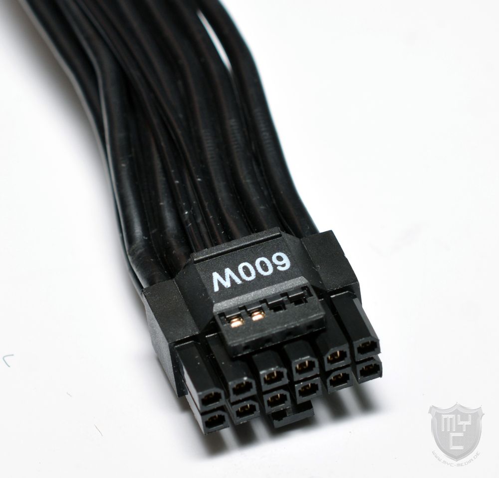Eine große Neuerung, welche mit der ATX 3.0 Spezifikation in Netzteile ab einer Ausgangsleistung von 450 Watt Einzug erhalten hat und auch auf ATX 3.1 Netzteile zutrifft, ist ein neuer Stromanschluss für Grafikkarten. Obwohl dieser Anschluss deutlich kompakter gebaut ist, ist er dennoch in der Lage, eine Grafikkarte mit bis zu 600 Watt Leistung über einen einzelnen Stecker zu versorgen.