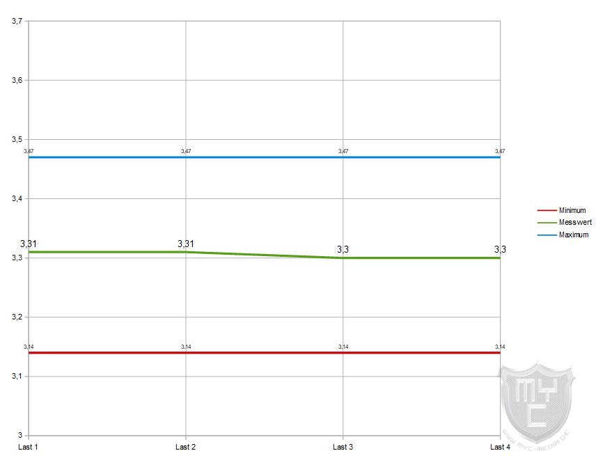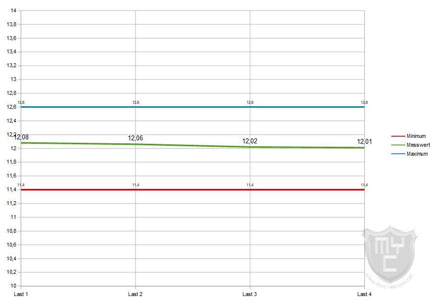 Die Spannungen sollten nach Möglichkeiten auch bei einem Lastwechsel möglichst gleich bleiben und nicht nach oben oder unten ausbrechen.