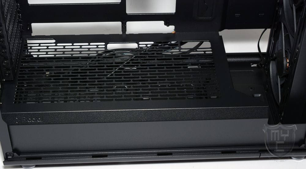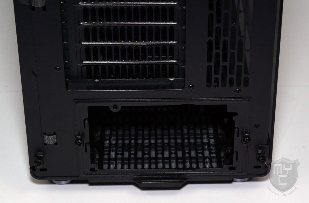 Der verbaute PSU-Tunnel erstreckt sich auf seiner Oberseite zudem nicht über die gesamte Gehäusetiefe, sondern wurde im vorderen Bereich mit einer Aussparung zur Radiatormontage ausgestattet.