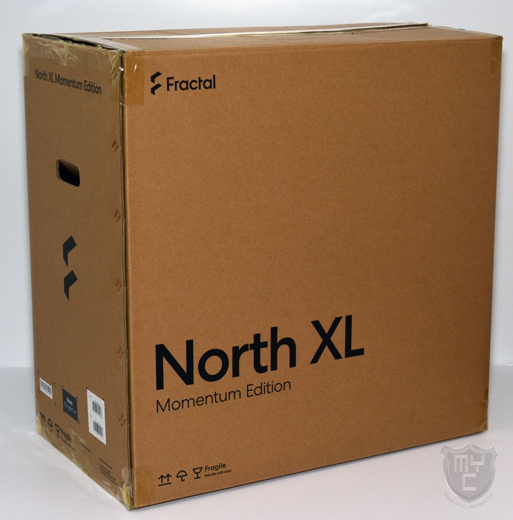 Das North XL – Momentum Edition ATX-Gehäuse wird von Fractal Design in einer neutralen Verpackung geliefert, welche neben dem Fractal Design Logo lediglich mit der Modellbezeichnung bedruckt wurde.