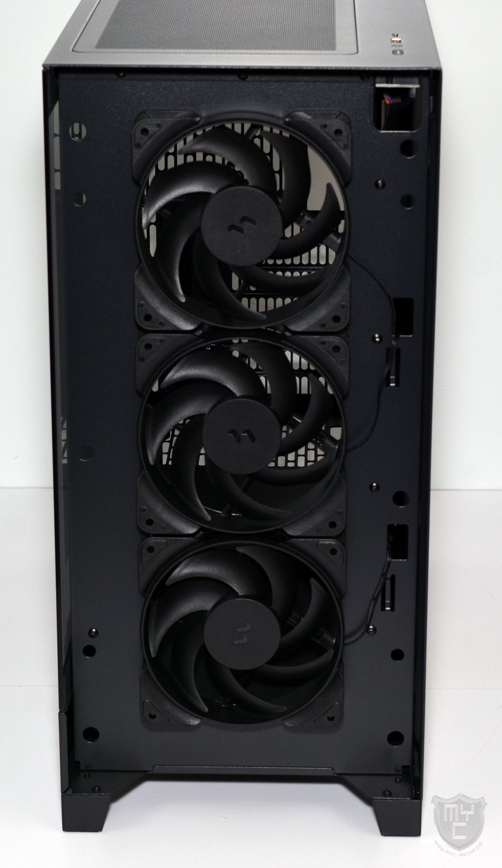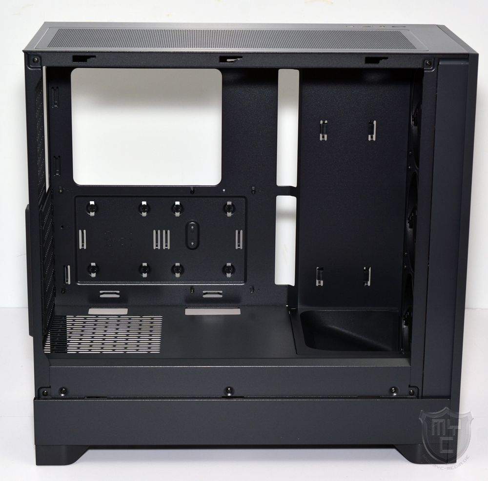 wurde das Gehäuse auf der linken Seite mit einer gehärteten Echtglasscheibe ausgestattet, welche sich von der Gehäuseoberseite aus bis zur oberen Kante des Netzteiltunnels erstreckt.
