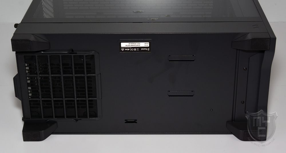 Auf der Gehäuseunterseite hat Fractal Design im hinteren Bereich einen abnehmbaren Staubfilter verbaut, welcher den Lufteinlass für das Netzteil vor eindringendem Staub schützt. Für einen sicheren Stand sorgen vier gummierte Kunststofffüße.