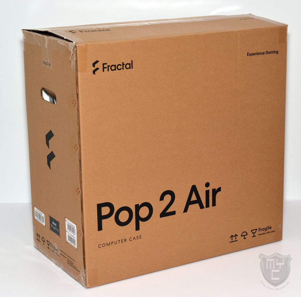 Das Pop 2 Air ATX-Gehäuse wird von Fractal Design in einer neutralen Verpackung geliefert, welche auf der Vorder- als auch Rückseite neben dem Fractal Design Logo lediglich mit der Modellbezeichnung bedruckt wurde.