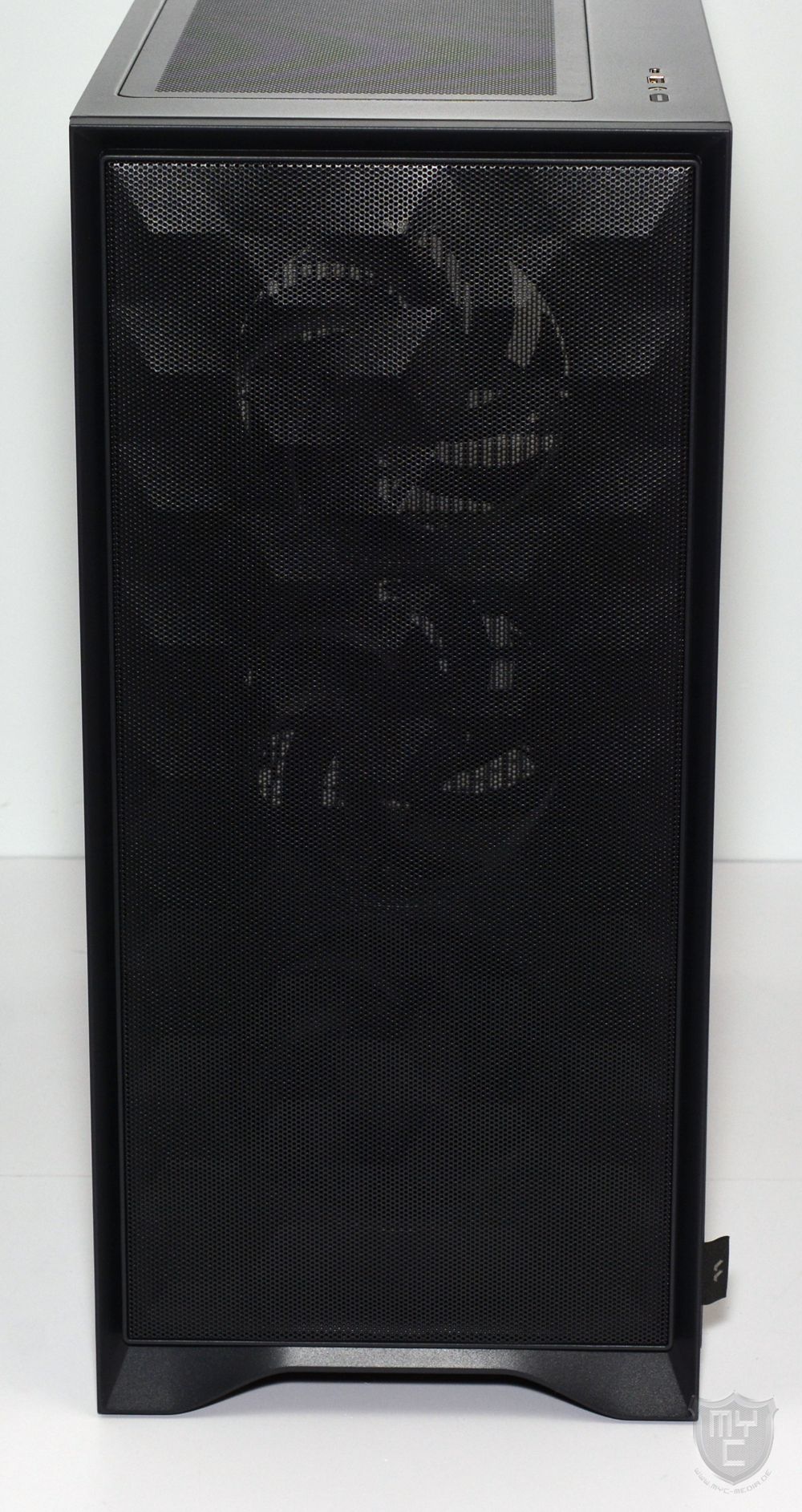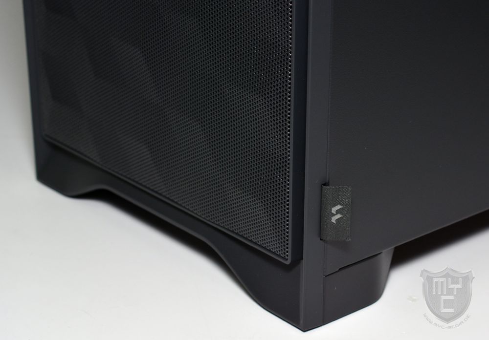 Dieses Design erzielt Fractal Design vor allem durch die Gehäusefront, welche über eine schwarze Kunststoffumrandung verfügt, in welche ein großes Meshgitter eingefasst wurde.