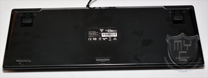 Blickt man einmal auf die Unterseite der Tastatur, so findet man hier ein Kunststoffgehäuse vor, welches lediglich im vorderen Bereich mit Gummifüßen ausgestattet wurde.