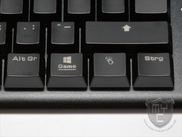 Die auf der rechten Seite verbaute Windows-Taste wurde ebenfalls mit einer weiteren Funktion belegt. Betätigt man diese zusammen mit der FN-Taste, so wird der Game-Modus aktiviert bzw. Deaktiviert, wodurch die Windows-Taste entsprechend deaktiviert bzw. aktiviert wird.