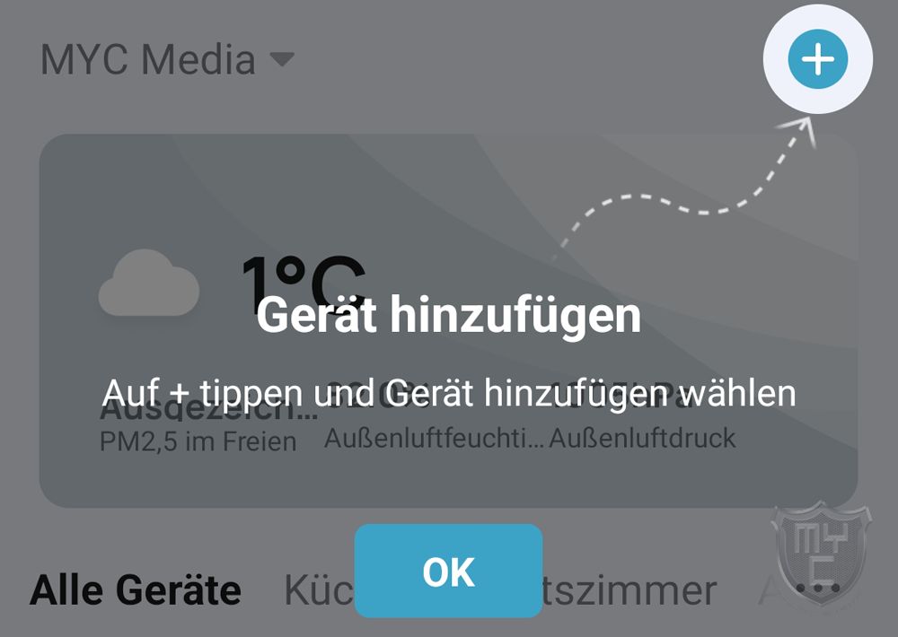 Wie man es von ähnlichen Apps her kennt, kann man über das in der oberen rechten Ecke zu findende “+”-Symbol mit der Kopplung des GU10 Leuchtmittels starten.