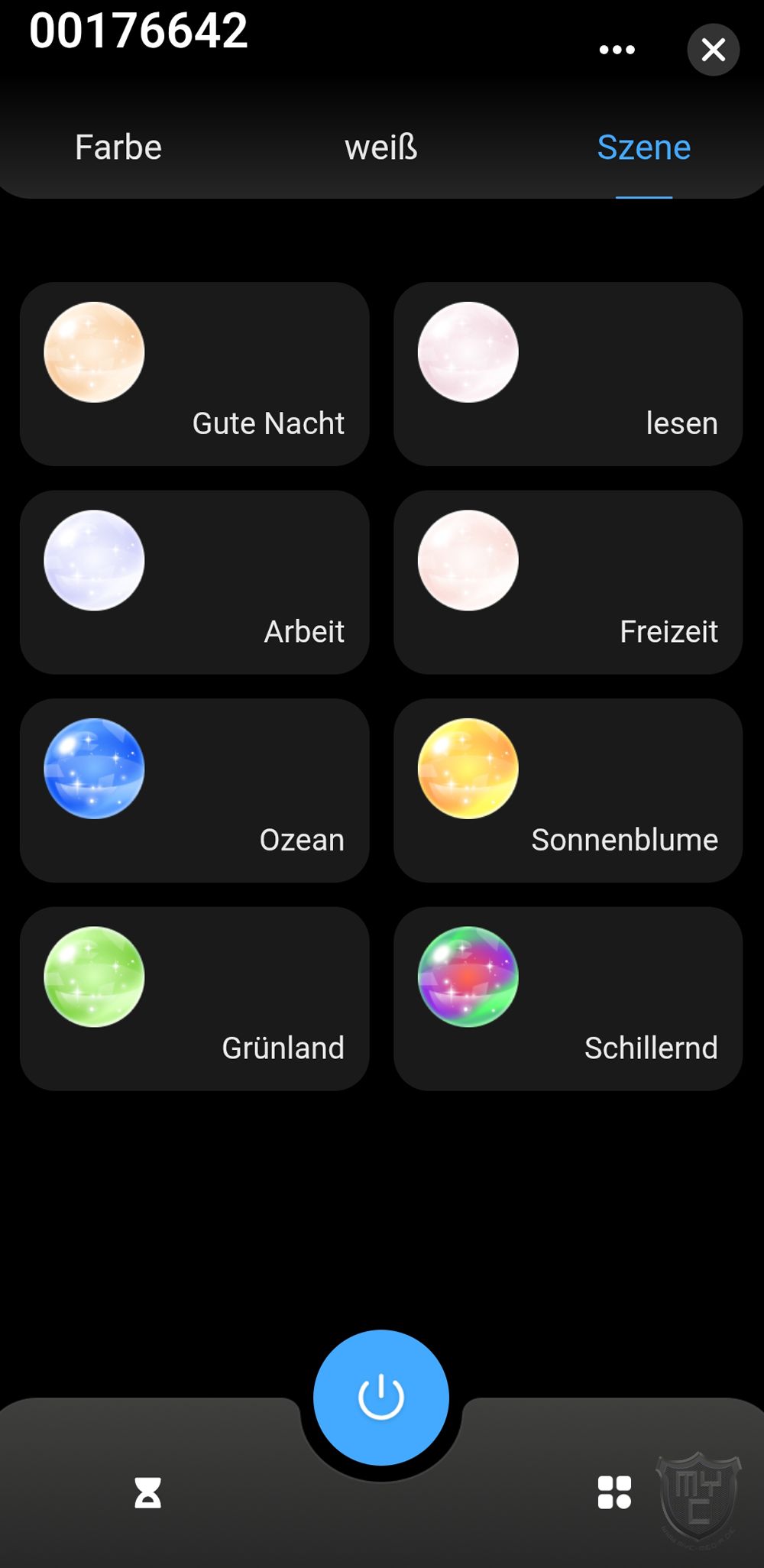 Neben der Möglichkeit eine feste Beleuchtungsfarbe zu wählen, kann man über den Menüpunkt “Szene” auch aus verschiedenen Konfigurationen wählen.