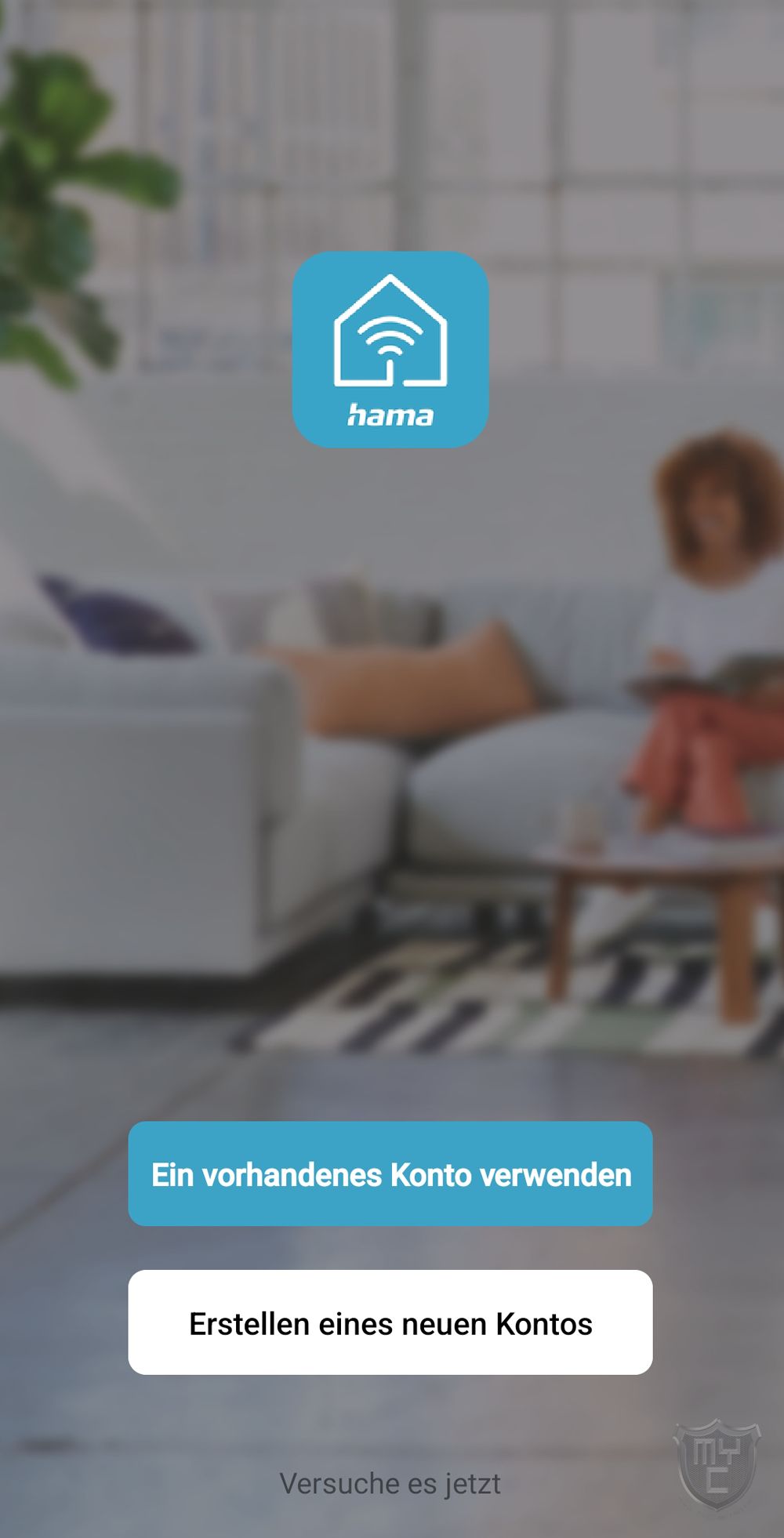 Sobald man die Hama App installiert hat, muss man sich nach dem Akzeptieren der Nutzungsbedingungen entweder mit einem bestehenden Account anmelden oder ein neues Konto erstellen.