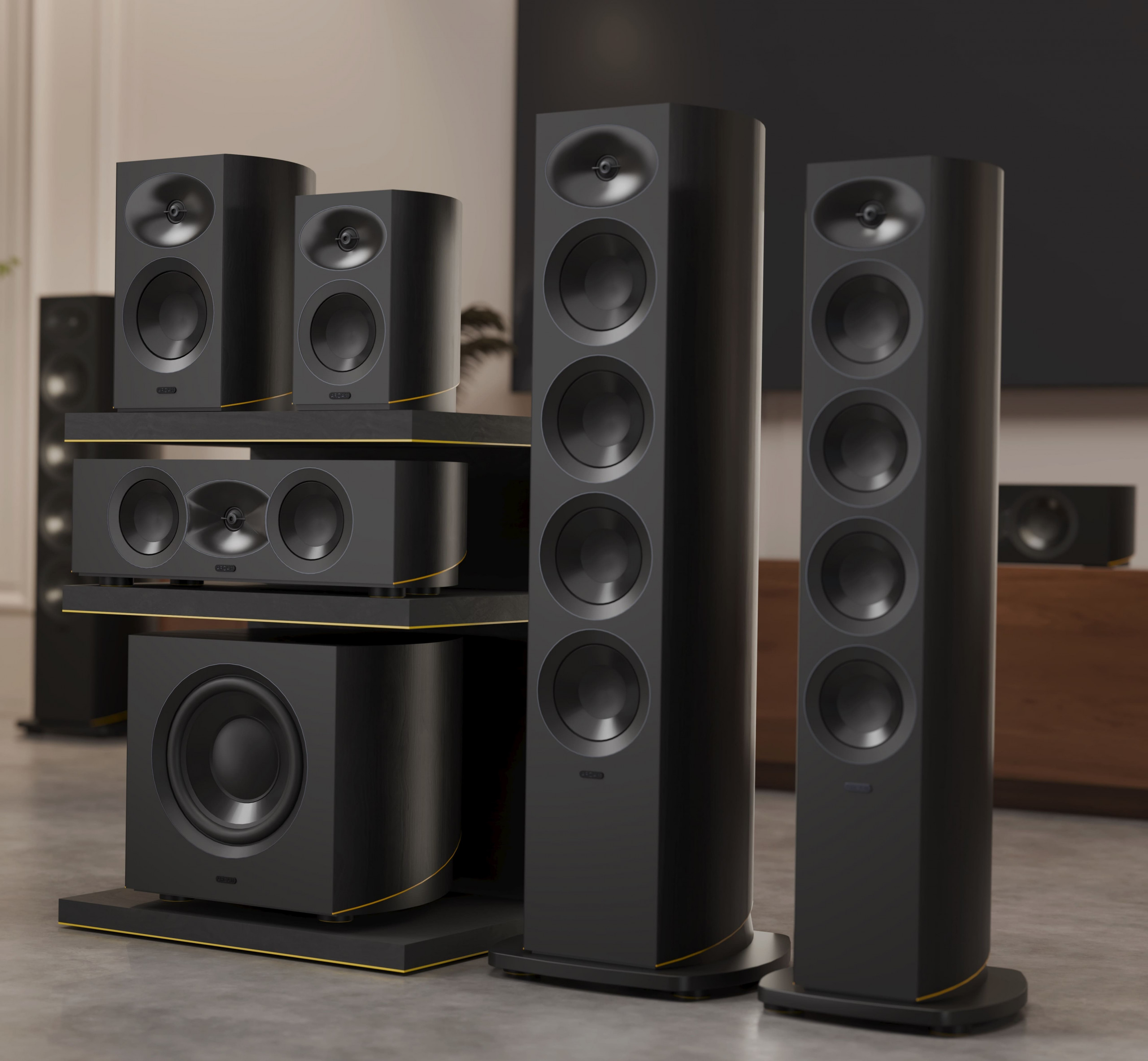 Immersiver Sound auf neuem Niveau: Neun Lautsprecher & drei fortschrittliche AV-Prozessoren von JBL Synthesis.