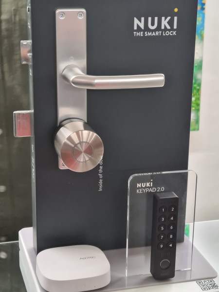 Der Smart-Lock-Hersteller Nuki stellte der anwesenden Presse abseits der IFA einen Prototype des kommenden Keypads vor, welches über eine NFC-Schnittstelle verfügt und somit Matter fähige Smart Locks kompatibel zum kommenden Aliro-Standard macht.
