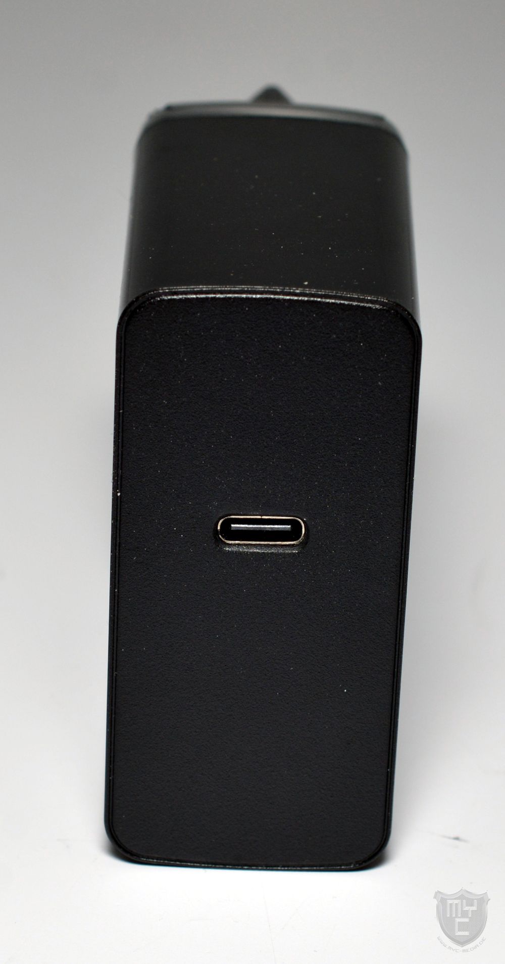 Mit einem Blick auf die Gehäuserückseite findet man eine matte Kunststoffblende vor, in welche eine USB-C-Schnittstelle eingelassen wurde.
