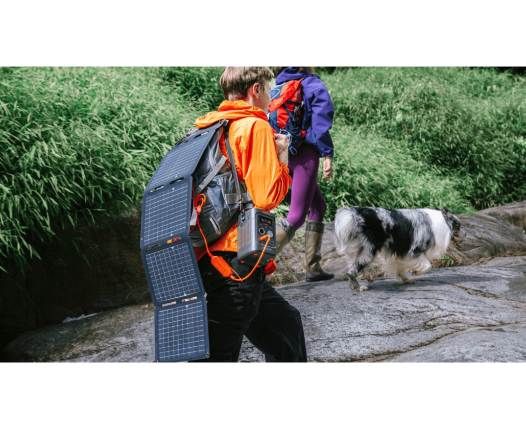 Das SolarSaga 40 Air bringt als Fliegengewicht mit seiner kompakten Größe von zusammengefaltet 232 × 339 × 40 mm oder aufgeklappt 962 × 339 × 20 mm, gerade einmal 900 Gramm auf die Waage und ist damit leichter als die meisten vergleichbaren 30- bis 45-Watt-Panels auf dem Markt. Schnell zusammengeklappt lässt es sich platzsparend im Rucksack verstauen oder von außen an diesem befestigen, um etwa während einer Wanderung die Sonnenenergie zu nutzen. Dazu werden Karabiner mitgeliefert, die sowohl den Transport als auch das Lade-Set-up besonders komfortabel gestalten.