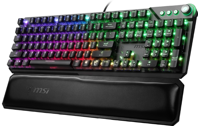 Die MSI VIGOR GK71 SONIC Gaming-Tastatur ist mit den MSI-eigenen Sonic-Leichtbau-Schaltern ausgestattet, mit denen Gamer durch schnellere Reaktion und leichten Tastendruck in Wettbewerben dominieren können. Die exklusiven MSI ClearCaps verfügen über ein transparentes, zweischichtiges Design, das Licht durch die Tastenkappen dringen lässt. Darüber hinaus verfügt die GK71 über ein intelligentes Dual-Touch-Lautstärkerad, dedizierte Medientasten und eine ergonomische Handgelenkauflage aus Memory-Schaumstoff, die ein außergewöhnlich komfortables Erlebnis bietet.
