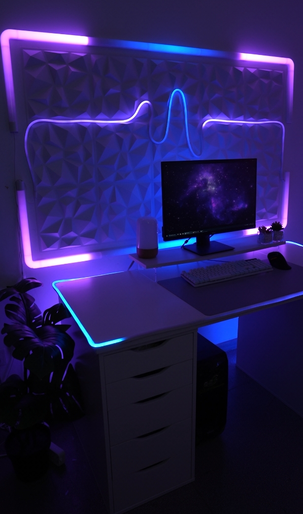• Multi-Zone-RGBIC-Beleuchtung und DIY-Effekte: Alle AI Lighting Pro-Modelle verwenden fortschrittliche RGBIC-LED-Technologie, was bedeutet, dass jeder Lichtstreifen oder jede Lampe in adressierbare Segmente unterteilt ist, die gleichzeitig verschiedene Farben anzeigen können. Dies ermöglicht fließende Farbverläufe und „Rainbow Chasing”-Effekte über einen einzelnen Streifen oder eine einzelne Leuchte hinweg. Über die Lepro-App können Benutzer die Farbe, Helligkeit und Animationsgeschwindigkeit jedes Segments individuell anpassen – oder sogar ganz neue mehrfarbige Effekte entwerfen – und so einen wirklich einzigartigen Look für ihren Raum erzielen. Kreative Tüftler können ihre DIY-Lichtszenen speichern und teilen, während der Sprachassistent die Anpassung auch per Sprache steuern kann.