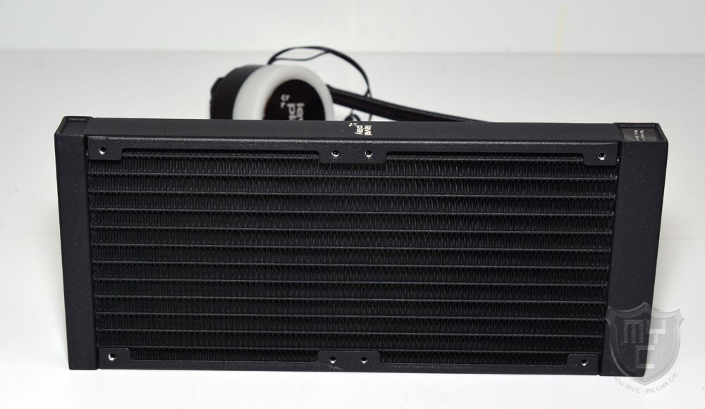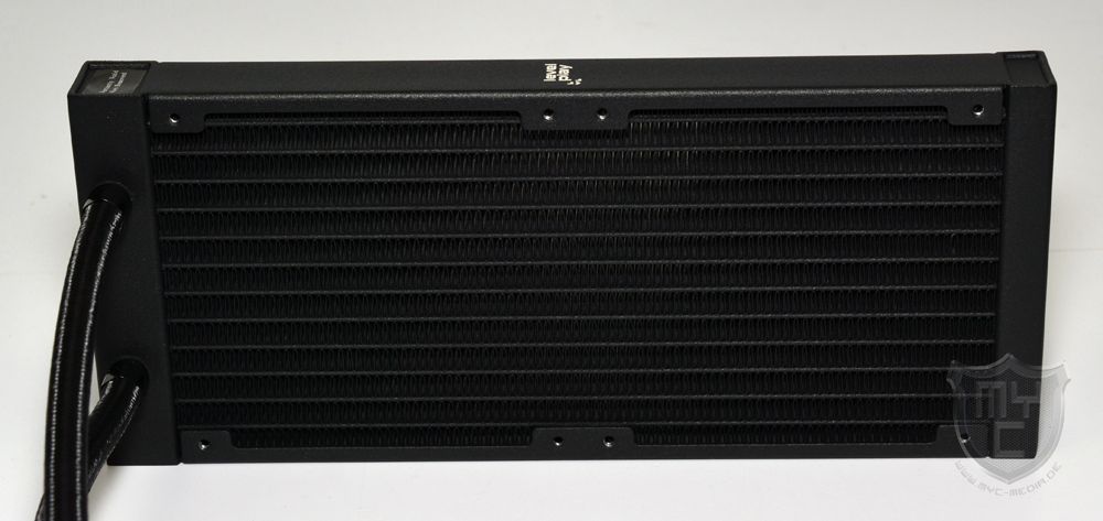 Wirft man einmal einen ersten Blick auf den aus matt schwarz lackiertem Aluminium gefertigten Radiator, so ist schnell zu erkennen, dass die verwendeten Schläuche nicht nur fest mit dem Pumpengehäuse verbunden sind, sondern auch auf die feststehenden Anschlüsse des Radiators gepresst wurden.