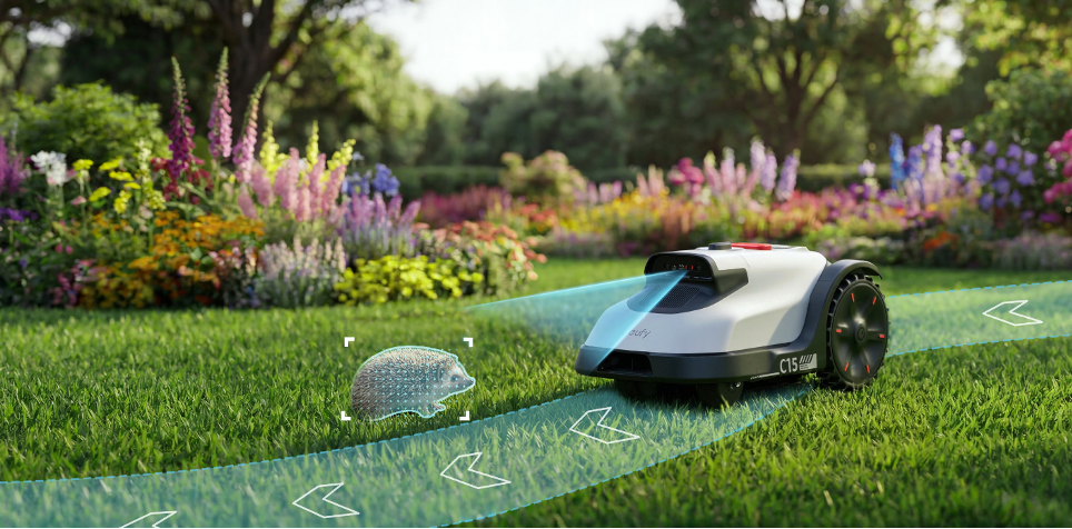 Wie die mehrfach ausgezeichnete E-Serie setzt auch der eufy C15 auf die bewährte eufy TrueVision-Technologie. Der Mähroboter kommt ohne Begrenzungskabel, RTK-Antenne und manuelles Kartieren aus. Stattdessen erfassen Kameras in Kombination mit KI-Navigation den Garten automatisch, planen optimierte Mähpfade und sorgen für eine gleichmäßige Rasenpflege. Der Start ist entsprechend einfach: Auspacken. Aufstellen. Loslegen. Ausgelegt für Flächen bis 500 Quadratmeter, eignet sich der eufy C15 besonders für urbane Gärten. Auch in komplexeren Gartenlayouts arbeitet das Modell zuverlässig: Die 3D-Hinderniserkennung identifiziert über 300 typische Objekte und umfährt sie intelligent. Selbst enge Passagen, Bereiche unter Bäumen oder Flächen im Schatten werden sicher bearbeitet. Gleichzeitig erkennt der C15 auch Kleintiere wie Igel – nachts sollte der Rasenmäher ohnehin ruhen – und stoppt automatisch.