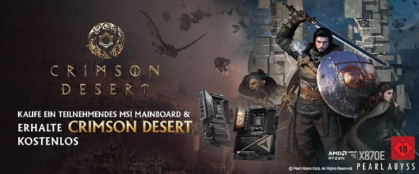 Vom 6. März bis zum 6. April 2026 gibt es beim Kauf eines ausgewählten MSI X870E oder B850 Mainboards als Bonus einen kostenlosen Crimson Desert Steam-Code dazu. Damit können Spieler direkt in die actiongeladene offene Welt von Pywel eintauchen und die atemberaubende Grafik – angetrieben von der Spitzenleistung der neuesten Hardware von MSI – in ihrer vollen Pracht erleben.